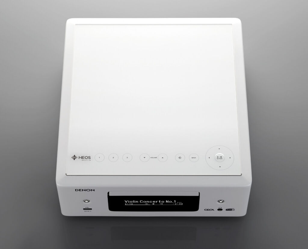 Denon RCD-N12 stereovahvistin striimaustoiminnoilla, radiolla, CD-soittimella ja TV-yhteydellä.