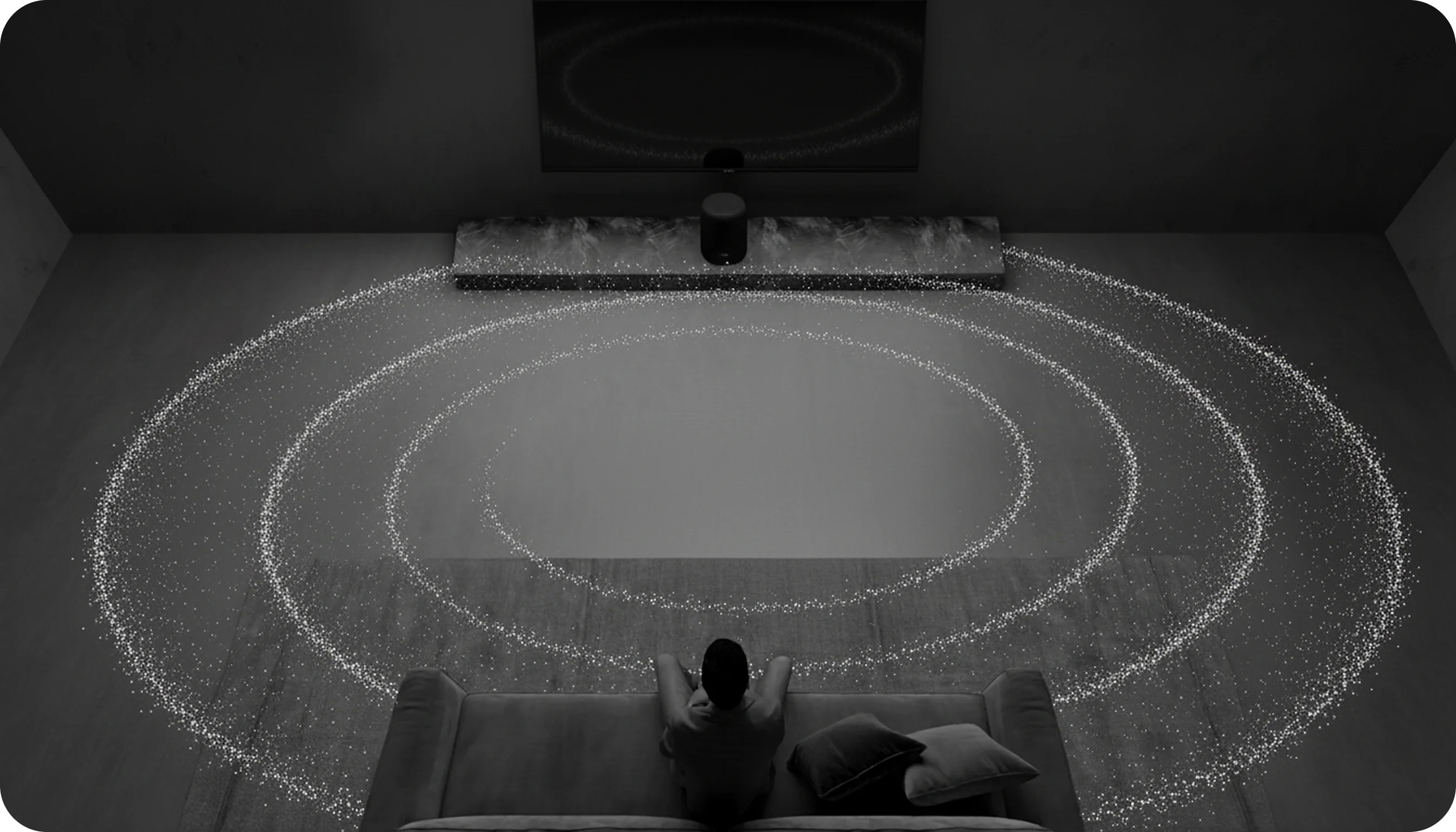 Henkilökohtainen sweet spot. Mukautuu todelliseen istumapaikkaasi ja uudelleenvirittää sekunneissa kaiuttimen uudelleen siirtelyn jälkeen, säilyttäen kaiuttimen tarkoitetun sointivärin ja pitäen musiikin selkeänä kaikkialla huoneessa.