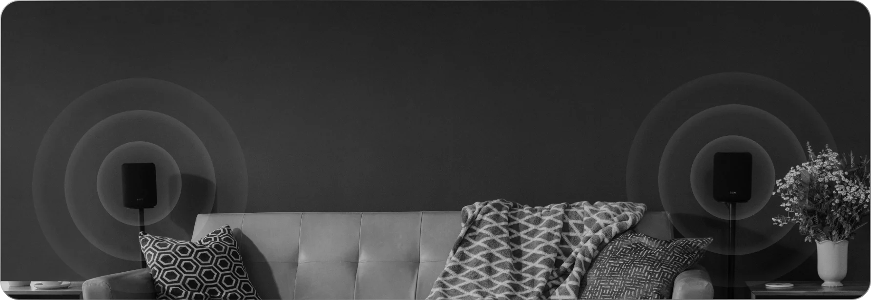 Suurempi äänikuva. Yhdistä kaksi WiiM Sound Lite-kaiutinta omiksi vasemmaksi ja oikeaksi kanavaksi — leveämpi äänikuva, selkeämmät laulut, tarkka stereokuva. Määritys muutamalla napautuksella WiiM Home -sovelluksella.